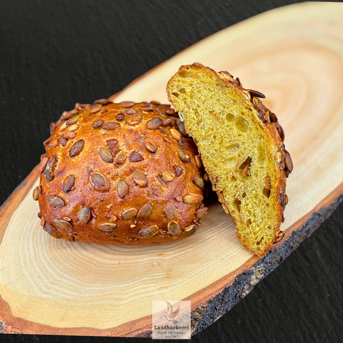 Mit einer goldbraunen Kruste und locker-aromatischer Krume überzeugt dieses Brötchen durch seinen fein-nussigen Geschmack. Hochwertiges Kürbiskernöl im Teig und geröstete Kürbiskerne on top machen es zur idealen Wahl für alle, die Wert auf Qualität und besonderen Genuss legen.